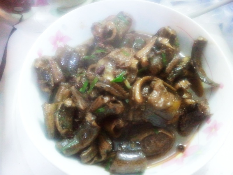 4、烹入料酒、香醋、生抽,将鳝段干烧10分钟。