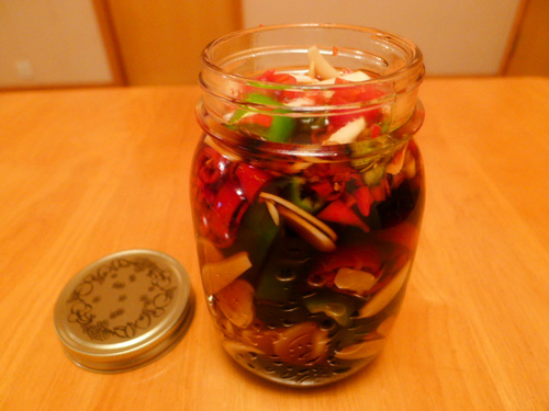 及以下步骤:调料中的味醂(使制品增加香气及色泽) 准备一个有盖子的密封瓶子。 将所有的材料、调料都放进瓶子里。 封好瓶口(最好在盖与瓶之间放一层保鲜膜),无需冷藏,浸渍约4个星期即可食用。 调料中的酱油 调料中的绍兴酒 调料中的味醂(使制品增加香气及色泽) 准备一个有盖子的密封瓶子。 将所有的材料、调料都放进瓶子里。 封好瓶口(最好在盖与瓶之间放一层保鲜膜),无需冷藏,浸渍约4个星期即可食用。