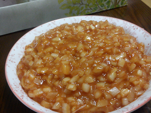 2、将洋葱切碎,越小越好。