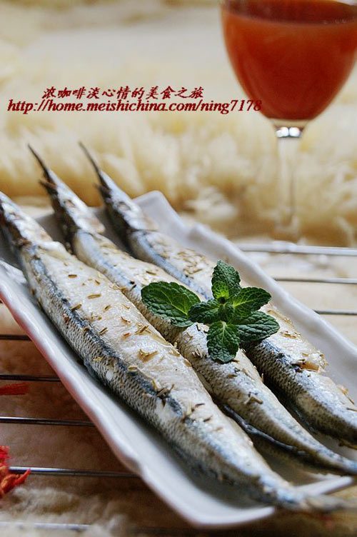 第一眼看见这棒鱼就被它的外表所吸引,银亮的外皮、针状的长嘴、修长的身体,很漂亮,有点观赏鱼的感觉。这种鱼肉质细腻,口感鲜美,非常适合烧烤和油炸。我用迷迭香来烤,味道很特别,如果亲们不喜欢这味或者没有迷迭香,也可以自由发挥,烤成孜然味、咖喱味、辣味估计都会不错。 关于迷迭香: 迷迭香再西餐中是经常使用的香料,在牛排、土豆等料理以及烤制品中特别经常使用。有种特别清甜带松木香的气味和风味,香味浓郁,甜中带有苦味。 迷迭香能够消除胃气胀、增强记忆力、提神醒脑、减轻头痛症状、对伤风、腹胀、肥胖等亦很有功效。有较强的收敛作用,调理油腻不洁的肌肤,促进血液循环,刺激毛发再生。改善脱发现象(孕妇禁食)。 改善语言、视觉、听力方面的障碍,增强注意力,治疗风湿痛,强化肝脏功能,降低血糖,有助于动脉硬化的治疗,助麻痹的四肢恢复活力。 迷迭香有着青草一样的清凉气味和甜樟脑的气息,稍带刺激性,从古代起就被用来提高和加强记忆,直至今日希腊学生在考试前家里都会泡迷迭香茶,因为其独特的香味可以使人奋发向上。 迷迭香的传说、风俗及寓意: 迷迭香的香味浓郁,据说古代匈牙利女王喜欢用迷迭香泡澡。古代人相信它可以加强记忆力,所以它也有海上灯塔之称当外出的船迷失方向时,迷航的水手可以凭借着这浓浓的香气来寻找陆地的位置。宗教传说加深了迷迭香神圣的力量,在欧洲,迷迭香被广植于教堂的四周,教徒将它视为神圣的供品,因此迷迭香又被称为「圣母玛利亚的玫瑰」。另外两则传说是和基督教有关。 一说迷迭香的味道是耶稣所赐,耶稣在逃离犹太前往埃及途中,将洗好的衣服晾晒在迷迭香上,迷迭香因此被赋予许多药效。所以它有了芳香高贵的气息,且具有神的力量,可以净化驱魔。 二是迷迭香的花本来是白色的,在圣母玛利亚带着圣婴耶稣逃往埃及的途中,圣母的外衣被迷迭香勾到,迷迭香的小花瞬间变成天蓝色,以示对圣母玛利亚的敬意,从此迷迭香的花就转为蓝色了。 意大利的女生会拿着开着花的迷迭香轻轻敲叩着自己心上人的手指,并期待着给予正面的回应;或者是在婚礼中把编织成头冠戴在新人的头上,向世人昭告她对爱情的忠贞不渝。 迷迭香被定义为爱情、忠贞和友谊的象征,而它的花语则是回忆,拭去回忆的忧伤「你给我的承诺我不会忘记,请你永远留住对我的爱,思念我、回想我」。 意大利人会在丧礼仪式上将小枝的迷迭香抛进死者的墓穴,代表对死者的敬仰和怀念。而在维多利亚时代的英国,迷迭香的花语就有纪念的意思,象征着长久的爱情、忠贞不渝的友谊和永远的怀念。 注意事项: 迷迭香拥有增强记忆力的强大高效,这一点是迷迭香成为许多应考生的最爱,但是要注意的是迷迭香也是一味中草药,逢药三分毒,要想要有一个好成绩关键还是依靠平时的学习,可不要在临考前临时抱佛脚大量的使用迷迭香,要是不小心使用了过多的迷迭香导致药物中毒的话可不好,可不要美好的回忆留不止,反而留下了不好的回忆。