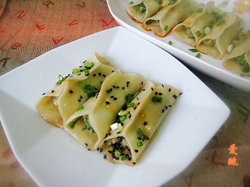 及以下步骤:加适量水,中火闷煮3分钟。撒些葱花。 撒些芝麻,用大火收干水份。 吃时浇上红油,即可。 肉馅用盐,糖,料酒,姜末,鲜抽,麻油鸡精搅拌好。 把芹菜末与猪肉糜搅拌均匀。 包饺子--我包的是两面开口的饺子。 锅里放油,把饺子整齐排入。稍微煎一下。 加适量水,中火闷煮3分钟。撒些葱花。 撒些芝麻,用大火收干水份。 吃时浇上红油,即可。