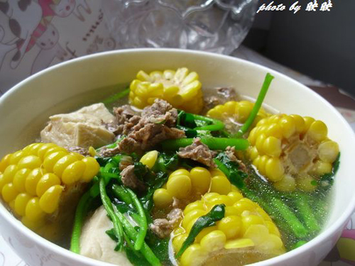 玉米豆腐牛肉菜汤烹饪方法 图片大全及制作所需厨具设备是网友推荐小编整理所得,是网友的分享推荐,是饮食文化的资源共享,中华美食文化是中华文明的具体践行,美食玉米豆腐牛肉菜汤烹饪制作就是在传承中华文化。