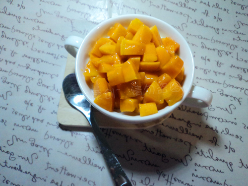 前两天突然好想吃双皮奶~~ 于是叫送牛奶的大哥多送一瓶水牛奶! 谁知道 当天是没有的!要等几天,昨天水牛奶送来了,可是吃了螺蛳粉,那个撑啊!!! 只好等到今儿才做了,翻翻冰箱,发现还有一个芒果呢! 好吧,做个芒果双皮奶,国庆那时,在广州一个小巷子的甜品店吃过这个,当时看菜单很好奇,以为就是果味的双皮奶! 第一个就点了,最后还打包一份上了飞机,多么忠实的芒果控啊!!! 谁知道,庐山真面目也就是普通双皮奶加上芒果粒罢了。。。没多大难度!不过还是很喜欢。