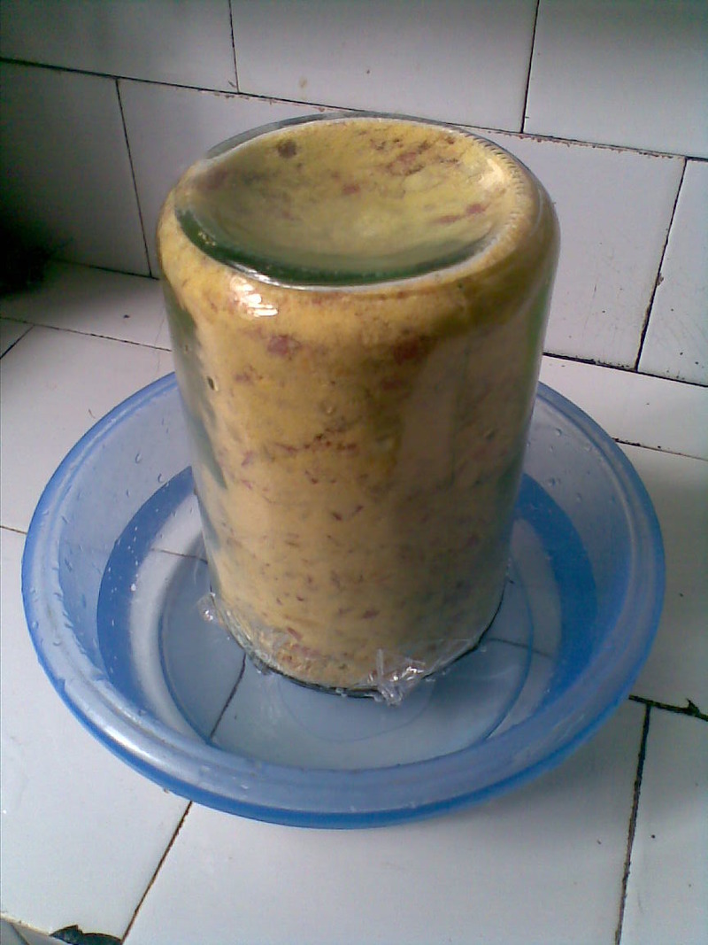 及以下步骤:同等量的玉米粉。 红辣椒洗净晒干水份去蒂。并且切碎。 同等量的玉米粉。 红辣椒洗净晒干水份去蒂。并且切碎。 同等量的玉米粉。 红辣椒洗净晒干水份去蒂。并且切碎。 同等量的玉米粉。 辣椒沫与玉米粉和在一起,再加一点点盐。 把和好的食材放时坛子里,用保鲜膜盖在坛口,盖上盖子。 把坛子倒置在装有水的盆中,水的位置为淹过坛盖上一点点。这种方法就是大家说的“扑水坛子”。盆里的水,还有保鲜膜一天换一次。到七八天以后,就可以炒着吃了。就便锅里放油,炒熟了就行。很下饭的。