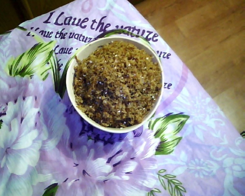 4、把锅烧热放入拆散的肉丝,小火炒至金黄色即可。最后放入芝麻。。
