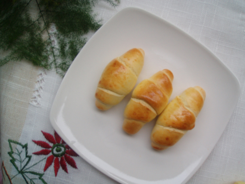 及以下步骤:表面扫蛋黄液(这忘记拍照啦), 臭美。 将所有材料混合揉至表面光滑。 分成20克一份。 搓成水滴形。 把面团擀长。 翻面后卷起来。 排排坐,放进烤盘。 表面扫蛋黄液(这忘记拍照啦), 臭美。