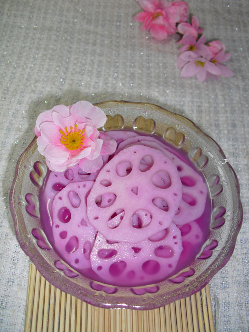 及以下步骤:紫甘蓝洗净、撕成片,放入锅中煮几分钟。 过滤取汁。 紫甘蓝洗净、撕成片,放入锅中煮几分钟。 过滤取汁。 紫甘蓝洗净、撕成片,放入锅中煮几分钟。 过滤取汁。 紫甘蓝汁中倒入1勺白醋,颜色瞬间会变成粉红色;颜色深浅取决于醋的多少。 莲藕洗净去皮,切薄片,用清水冲净。 藕片入沸水中(滴入几滴白醋)快速煮片刻,然后捞出,冲净沥干。加醋一是让藕不变色,二是让藕更脆。 紫甘蓝汁中倒入蜂蜜,充分搅匀;把藕片放入浸泡,时间尽量长一些,这样口感更脆爽,藕也能充分吸收粉色,更漂亮即可食用。