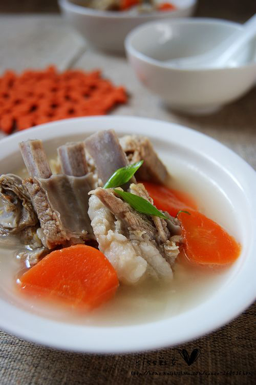 寒冷的冬天里,没有什么,能比一碗羊肉汤让我觉得更加温暖了。一进门,一阵温暖扑面而来。如果桌子上有一碗羊肉汤,那是多幸福! 羊肉和胡萝卜是很好的搭配,胡萝卜性凉,可以消积滞,化痰热,是秋冬时节的补益佳肴呢。羊肉补虚弱、益气血,长期食用可补中益气,预防手脚冰冷、帮助消化、止咳。
