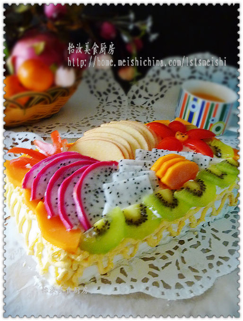 这个蛋糕是为了庆祝元旦特意做的,这个【奶油水果花样蛋糕】第一次做很生疏,不是很满意,但是颜色鲜艳,水果多多,寓意新的一年硕果累累。也借此把我的祝福送给的朋友们! 抬头望,浮云片片;低头看,落花点点;转移望,匆匆一年;提笔起,总结教训;勤思考,积累经验;再努力,争取明年;展开颜,胜过今年。祝福和美食家的所有朋友们元旦快乐!万事如意!