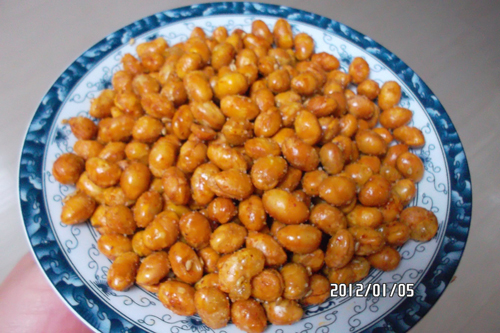 看到许多美食家纷纷发表自己的作品,爱吃的我也蠢蠢欲动,但本人做菜不是很拿手,记得小时候吃过母亲做过的油酥豆,当时就算得上是很好吃的东西了,不过那时做的不是很酥,也不是用油炸而是泡过的黄豆用油炒(因为当时舍不得用油炸,也没有那么多油),今天在家没事儿,三十年后的今天第一次做,就算是忆当年吧,不过这里加上了自己的创新,炸好的酥豆里加了椒盐和芝麻及辣椒粉。