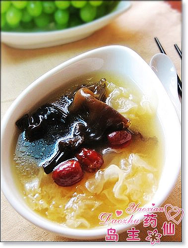 黑木耳有益气补血的功效,还能净化血液瘦身;而银耳则是含有很高的胶质,帮助美容; 黑白配合,让你美到不行!