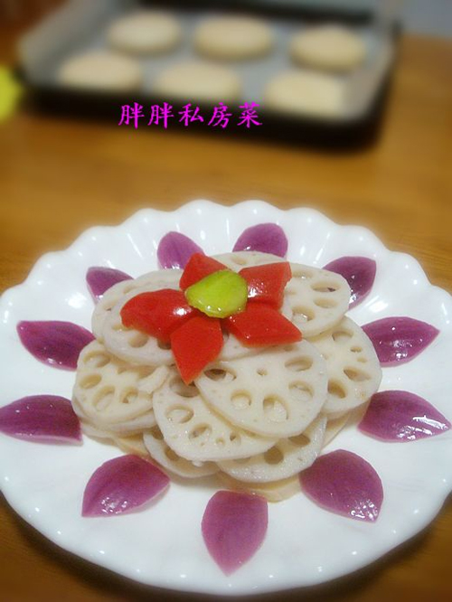 及以下步骤:杏鲍菇切成薄片。 放入锅中焯一下。 把洋葱切成花瓣形状。 彩椒切成菱形。 莲藕、杏鲍菇放到一起。 放入彩椒。 放入洋葱,加盐、白糖、白醋、味精、香油调匀即可。 把洋葱挑出来摆到盘边上,莲藕盛到盘中,彩椒放到莲藕上边摆成五角花型,中间是用青菜做的点缀。 放入洋葱,加盐、白糖、白醋、味精、香油调匀即可。 把洋葱挑出来摆到盘边上,莲藕盛到盘中,彩椒放到莲藕上边摆成五角花型,中间是用青菜做的点缀。