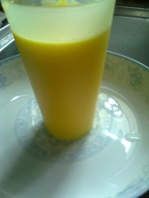 5、将木瓜奶昔用大火煮至起泡,后用小火煮,煮多三分钟左右(冬天煮一下暖一些,夏天就随便啦)。