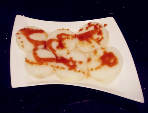 4、蒸好的淮山,喜欢蜂蜜的这时直接加些蜂蜜即可以吃啦。