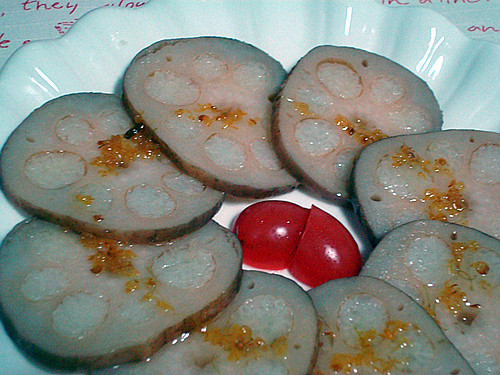 5、将煮好的莲藕捞出切片,淋上些许糖桂花即可美美享用喽!