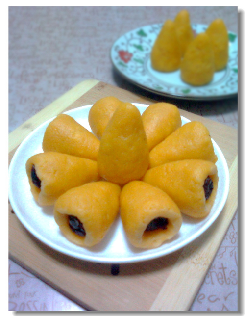 很早就想做这种小窝头了,以前也试过用玉米粉和面粉,总是会塌。前几天好不容易在一家超市发现了黄豆面,于是立马买来一试,做好是啥型,蒸好还是啥型,一点都不会变。成品很迷你,比大拇指大不了多少,样子很讨喜,可惜爷儿俩不是很赏光,大部分被我消灭啦。个人觉得除了硬点外口感挺不错的,有奶香还有豆香,因为中间有红枣,还是一小甜心儿呢,呵……会吃粗粮的你不妨一试哦!