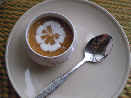 4、把酸奶在果汁上,挤一个圆圈。