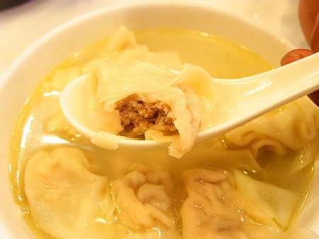 4、用碗分别放入川盐、胡椒、味精、鸡油和原汤,捞入煮熟的抄手即成。