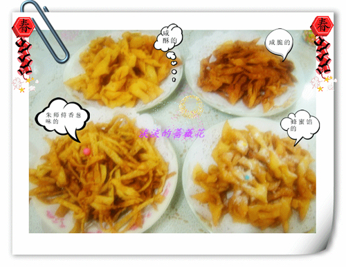 及以下步骤:捞出沥干油分摆盘即可。 这盘中间是有蜜,甜的。。 白芝麻味,脆的。。 咸鲜香葱味,鲜的。。。好吃哦。。。自己做就是卫生吃得更健康。。。 黑芝麻味,酥的。。 捞出沥干油分摆盘即可。 这盘中间是有蜜,甜的。。 白芝麻味,脆的。。 咸鲜香葱味,鲜的。。。好吃哦。。。自己做就是卫生吃得更健康。。。 黑芝麻味,酥的。。