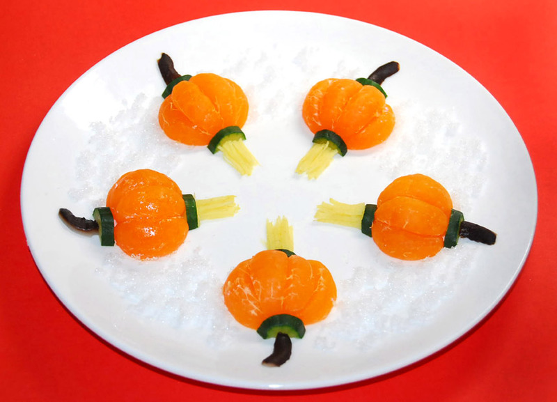 及以下步骤:橘子去皮和橘络后掰成橘子瓣,用白糖腌制一个小时。 取一个白色的平盘,用筷子将橘子瓣分别码放成五个宫灯的形状。 橘子去皮和橘络后掰成橘子瓣,用白糖腌制一个小时。 取一个白色的平盘,用筷子将橘子瓣分别码放成五个宫灯的形状。 橘子去皮和橘络后掰成橘子瓣,用白糖腌制一个小时。 取一个白色的平盘,用筷子将橘子瓣分别码放成五个宫灯的形状。 用洗干净的黄瓜把儿切成十个半月牙薄段,分别码放在五个宫灯形的上下。 生姜去皮切成细丝段,分别码放在五个宫灯形的内侧。 香菇清洗干净焯水切五个细长段,分别码放在五个宫灯形的外侧。 在每两个宫灯形之间撒上适量的白糖。