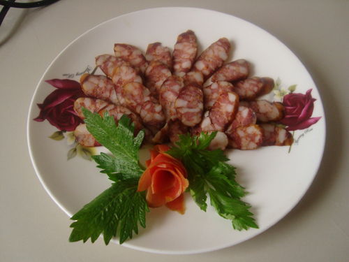 6、香肠和腊肉几乎已一个原理,除了做凉菜外,还可以配上蔬菜炒。