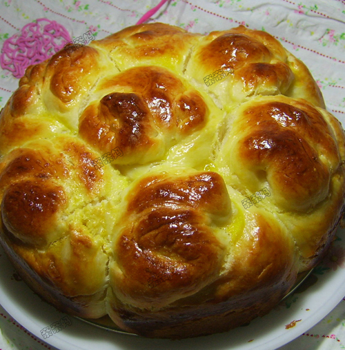 及以下步骤:搅好以后的椰蓉静置一会儿,让它充分吸收。 一发后的面团平均分割成8个,盖上保鲜膜松弛15分钟。 取一个小面团搓揉后擀开成长条,抹上椰蓉,卷起整形、依次入模子。(其实吧,一开始整的不是这模样,二发进行中了,千色色忽然想换造型了,又重新打的这结,之后又担心面团是不是受伤了,发的有些过了,最后这包包都有小裂痕了、、、 然后进行第二次发酵。(这是发好了) 发酵结束,刷上蛋液。(因为要做好看的样子,所以用的是八寸的蛋糕模) 烤箱置190度,中下层约35分钟。 掰开看、香甜浓郁的椰蓉哦~~ 发酵结束,刷上蛋液。(因为要做好看的样子,所以用的是八寸的蛋糕模) 烤箱置190度,中下层约35分钟。 掰开看、香甜浓郁的椰蓉哦~~