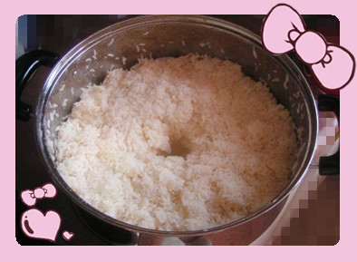 4、将蒸熟的糯米拿出,待温度降到手可触摸的热度即可。