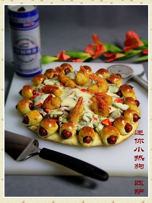 大炒勺的这款私家烘焙坊出品的大匹萨“迷你小热狗匹萨”就做好了,供朋友们参考!