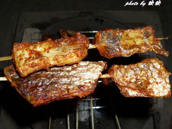 及以下步骤:烤好的鱼串。 烤好的鸭翅。 鱼串鸭翅大合照。 火盆上架好烤肉架,放上用竹签串好的鱼块。 再放上腌好的鸭翅和火腿肠。 烤好的鱼块,外酥里嫩,咸辣够味! 烤制的过程要注意翻面。 烤好的鱼串。 烤好的鸭翅。 鱼串鸭翅大合照。