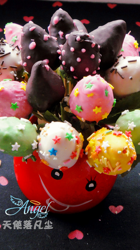 及以下步骤:也可以插入花瓶里送给心爱的人。 准备好材料,草莓洗净,不用去蒂,巧克力切小块。 巧克力隔温水融化,或像我一样放暖气片上面。 准备好材料,草莓洗净,不用去蒂,巧克力切小块。 巧克力隔温水融化,或像我一样放暖气片上面。 将一块土豆或萝卜放入小花瓶底部当底托。 草莓用竹签扎上均匀沾上一层巧克力。 马上撒一层糖珠或糖针装饰,充分晾干。 可以直接摆在盘子里。 也可以插入花瓶里送给心爱的人。