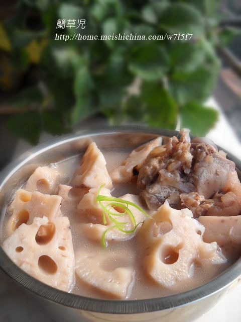 及以下步骤:大火煮开,倒入莲藕;煮开后,小火再煨40分钟;至莲藕粉烂。 煨好的骨汤加入盐。胡椒粉调味即可食用。 准备好食材。 弯弯骨放入凉水中,煮开,洗净。 莲藕去皮、洗净、切滚刀块。 切开的莲藕只有九孔哦。 洗净的弯弯骨放入沙吊子中,加入适量凉水,大火煮开,小火煨制1小时。 加入生姜,再煨30分钟。 大火煮开,倒入莲藕;煮开后,小火再煨40分钟;至莲藕粉烂。 煨好的骨汤加入盐。胡椒粉调味即可食用。
