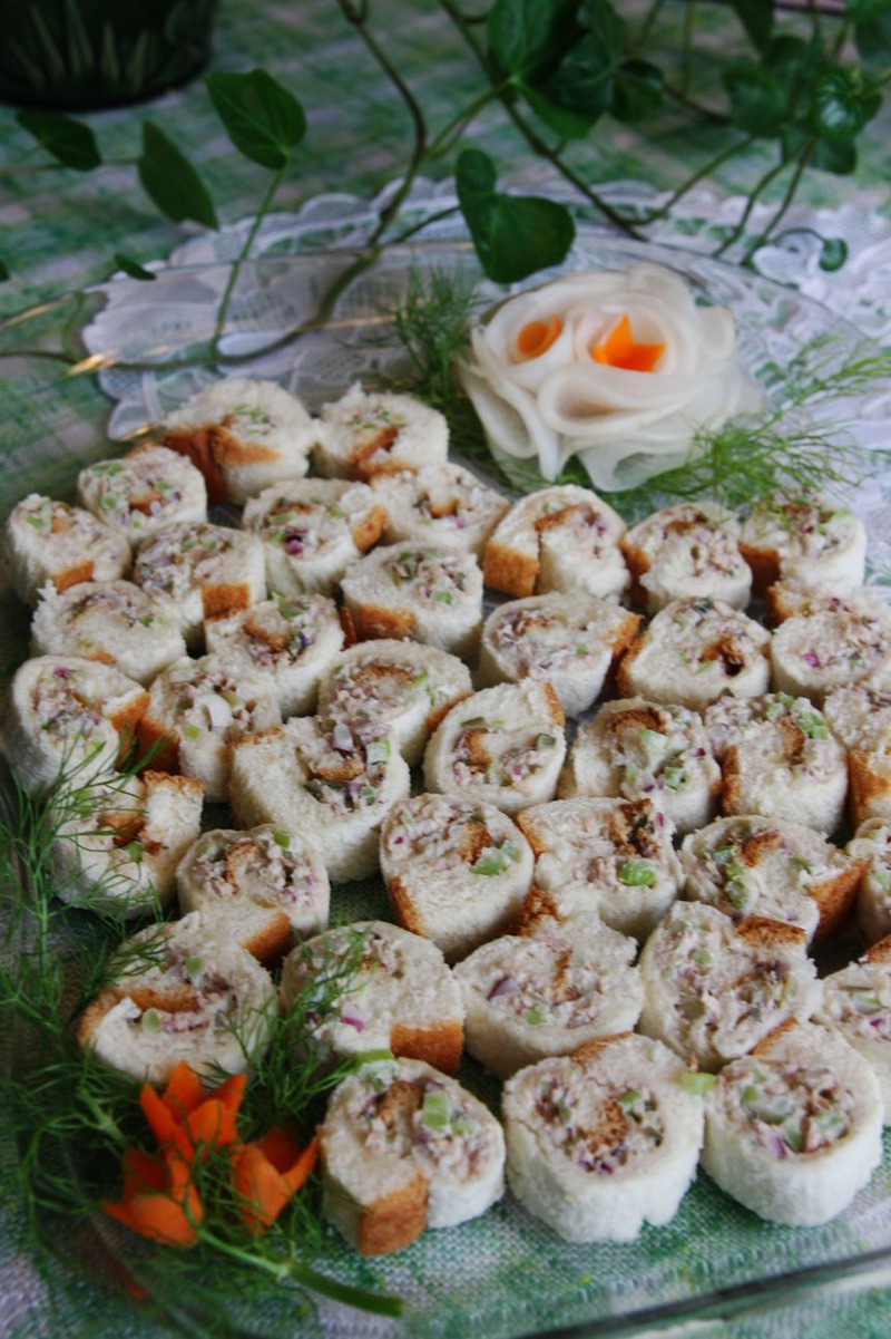 及以下步骤:混合所有的配料 为了方便,我用了罐头金枪鱼,罐装蛋黄酱,酸黄瓜也是罐装的,不影响口感 混合所有的配料 为了方便,我用了罐头金枪鱼,罐装蛋黄酱,酸黄瓜也是罐装的,不影响口感 混合所有的配料 为了方便,我用了罐头金枪鱼,罐装蛋黄酱,酸黄瓜也是罐装的,不影响口感 混合所有的配料 将2均匀的铺在面包片上 小心的把面包片卷起来,切成1.5公分厚的片 装盘装饰即可