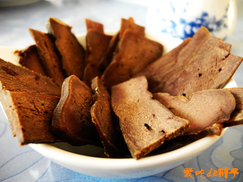 4,晾好的猪肝表面基本上是深棕色的,有点发硬。