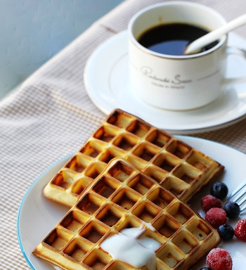 **********吃华夫时可以淋上蜂蜜或果酱,也可以涂炼乳或夹新鲜水果一起吃,并且趁热食用风味较佳。不过我现在给的这个配方我和儿子都觉得空口吃甜度是正好的,如果您想淋上蜂蜜或果酱的话我个人建议您最好还是适当减少糖的用量。