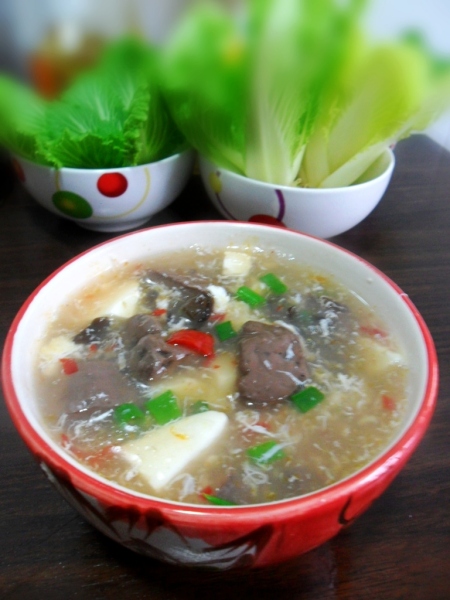 酸辣鸭血豆腐汤烹饪方法 图片大全及制作所需厨具设备是网友推荐小编整理所得,是网友的分享推荐,是饮食文化的资源共享,中华美食文化是中华文明的具体践行,美食酸辣鸭血豆腐汤烹饪制作就是在传承中华文化。