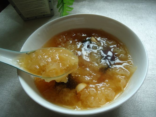 银耳含有一种对人体很有益处的植物胶及黏液质,不但能滋阴养颜,还能分解肠胃管道的污秽物,是肠胃的清道夫,银耳的粗纤维有助胃肠蠕动,减少脂肪吸收,故有助减肥作用,并有去除脸部黄褐斑、雀斑的功效;红枣具有补气养血安神的作用,俗话有一日吃三枣,青春永不老的说法,红枣还含有丰富的维生素c,有提高免疫力和美白的功效:莲子具有补脾止泻,益肾涩清,养心安神明目,滋补元气的作用,对多梦失眠,健忘有很好的疗效:这款甜汤特别适宜女性朋友,是女性补气养血养心的一款佳品~~~