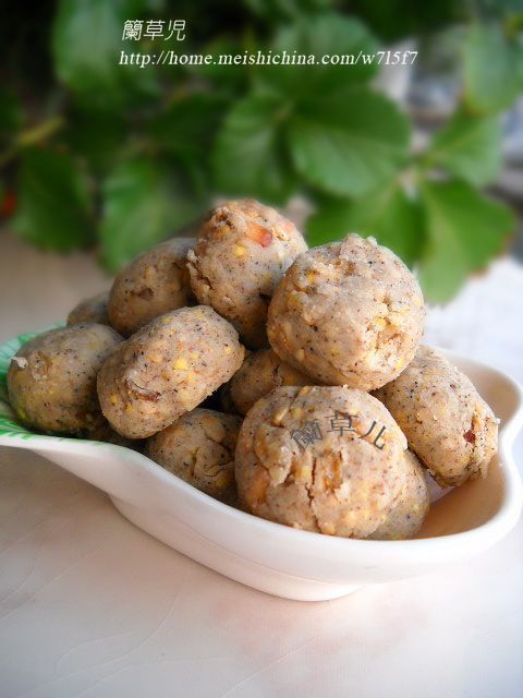及以下步骤:放入微波炉,中高火叮3分钟即熟。 准备好食材。 燕麦、芝麻、玉米碎、枸杞子混合拌好。 准备好食材。 燕麦、芝麻、玉米碎、枸杞子混合拌好。 花椒粉、盐、油拌匀,加入面粉拌匀。 加入燕麦混合物。 混合成面团。 面团分成若干个小剂子,做成酥球。 放入微波炉,中高火叮3分钟即熟。
