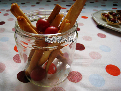 及以下步骤:将面团切成均匀的小剂子。 擀成2毫米左右的圆的薄皮,从中间均匀地切一刀,成为两张皮。 如图将千岛酱挤一条在面皮上。 从不规则的那一边卷起来,这样卷的棒比较漂亮。 依次做好所有的千岛棒,放入烤盘。烤箱预热,先180°20分钟,然后160°10分钟。各家烤箱不太一样,烤的时候多关注下,别烤糊了。 将面团切成均匀的小剂子。 擀成2毫米左右的圆的薄皮,从中间均匀地切一刀,成为两张皮。 如图将千岛酱挤一条在面皮上。 从不规则的那一边卷起来,这样卷的棒比较漂亮。 依次做好所有的千岛棒,放入烤盘。烤箱预热,先180°20分钟,然后160°10分钟。各家烤箱不太一样,烤的时候多关注下,别烤糊了。