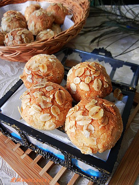 美味麦片花生球制作步骤: