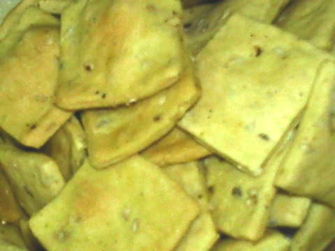 盐(2克) / 面粉(100克) / 水(50克) / 熟芝麻(5克) / 花椒面(0.25克) / 小苏打(0.5克)