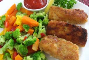 胡椒粉(少许) / 盐(1/4茶匙) / 油(1/3 杯) / 鸡蛋(1个) / 面粉(1 杯) / 鲜奶油(1/2 杯) / 柠檬(1个) / 面包屑(1.5 杯)