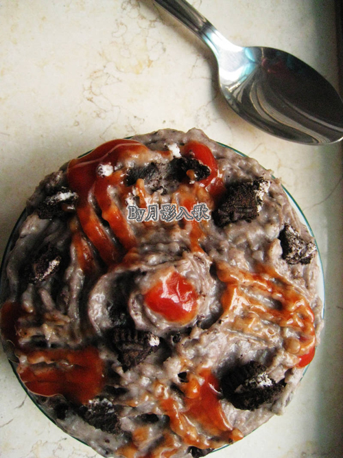 3.做好的冰激凌要立即吃,否则奥利奥的脆脆的口感就没有了,变成软软的馒头口感。