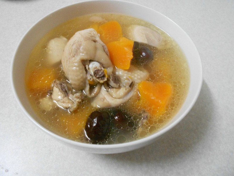及以下步骤:鸡肉洗净 在滚水里烫一下,去点血水 鸡肉洗净 在滚水里烫一下,去点血水 鸡肉洗净 在滚水里烫一下,去点血水 红枣,鸡肉洗净备用 洗好鸡肉,红枣,加水煮开 汤煮开,煮一下,在放入木瓜 煮一个小时,放入盐就可以了