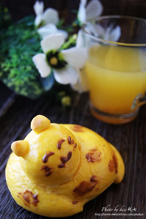 及以下步骤:将身体部分搓长条形,两端蜷缩起来。 再把头部、尾巴、耳朵置于其上。 整形排入烤盘进行最后发酵至2倍左右,约35分钟。 发酵完成后取出,在表面刷一层鸡蛋液;烤箱预热,180度,中层、上下火、15分钟,烘烤上色即可取出。 待面包冷却后用巧克力装饰酱画出表情即可。 将身体部分搓长条形,两端蜷缩起来。 再把头部、尾巴、耳朵置于其上。 整形排入烤盘进行最后发酵至2倍左右,约35分钟。 发酵完成后取出,在表面刷一层鸡蛋液;烤箱预热,180度,中层、上下火、15分钟,烘烤上色即可取出。 待面包冷却后用巧克力装饰酱画出表情即可。