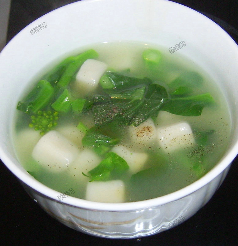 及以下步骤:等到细园子浮起,就下苔心菜,煮到细园子再次浮起,就可以了。 出锅,只是放些盐、略撒些胡椒粉就行了,清甜、鲜美着呢! 看啊看一朵小菜花~~ 揪一个粉团搓成细长条。 切成小丁。这俩人赖床、左喊右喊不肯起,我闲着没事,把小丁又一个一个捏成了小方块,还挺好看的~~ 苔心菜洗净,切成小段。 锅内入水,煮开后入细园子。 等到细园子浮起,就下苔心菜,煮到细园子再次浮起,就可以了。 出锅,只是放些盐、略撒些胡椒粉就行了,清甜、鲜美着呢! 看啊看一朵小菜花~~