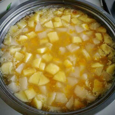 及以下步骤:放适量水于锅中,将苹果和香蕉一同放入开大火煮沸。 苹果、梨洗净去皮后切成小块状;香蕉去皮后切成片状。 放适量水于锅中,将苹果和香蕉一同放入开大火煮沸。 苹果、梨洗净去皮后切成小块状;香蕉去皮后切成片状。 放适量水于锅中,将苹果和香蕉一同放入开大火煮沸。 苹果、梨洗净去皮后切成小块状;香蕉去皮后切成片状。 放适量水于锅中,将苹果和香蕉一同放入开大火煮沸。 然后加入桔子罐头和小圆子。 再次烧开,根据自己口味加入适量的冰糖。 待冰糖融化、小圆子浮起后即可加入适量的湿生粉(淀粉)勾欠即可出锅。