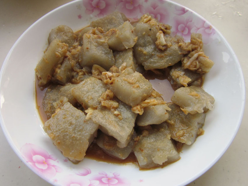 酱汁我做得不太好,放了蒜泥,麻汁,鱼露,还怕味不足放了些味极鲜。这次虽然做出来了,但是口感偏硬,不知道是面粉加多了还是煎得时间太长。另外,没有粗地瓜淀粉也是遗憾。所谓“食不厌精,脍不厌细”,下次再做,争取做得更好一些。