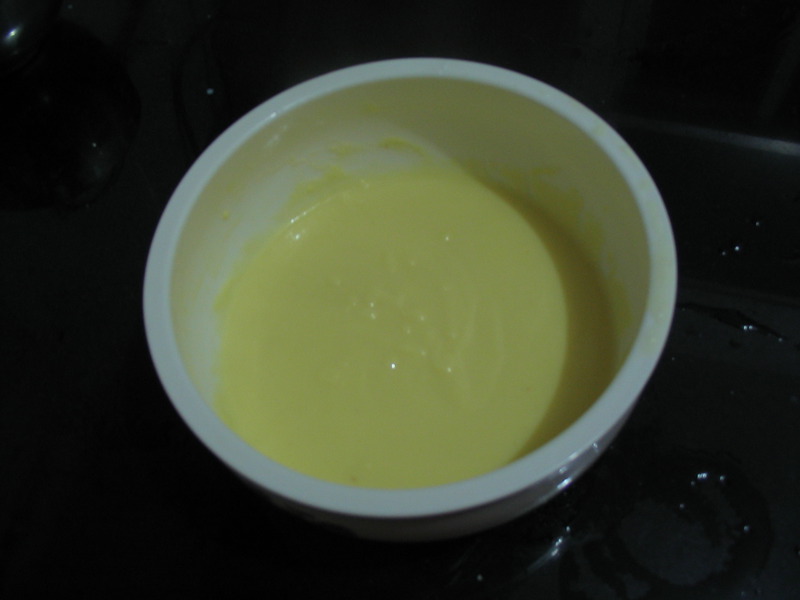 6、奶与蛋黄混合好后,倒入煮锅用小火煮开。有人说要微开,我怕未熟吃坏肚子,用小火煮到全开,只是边煮边用打蛋器搅动,不会影响效果的。