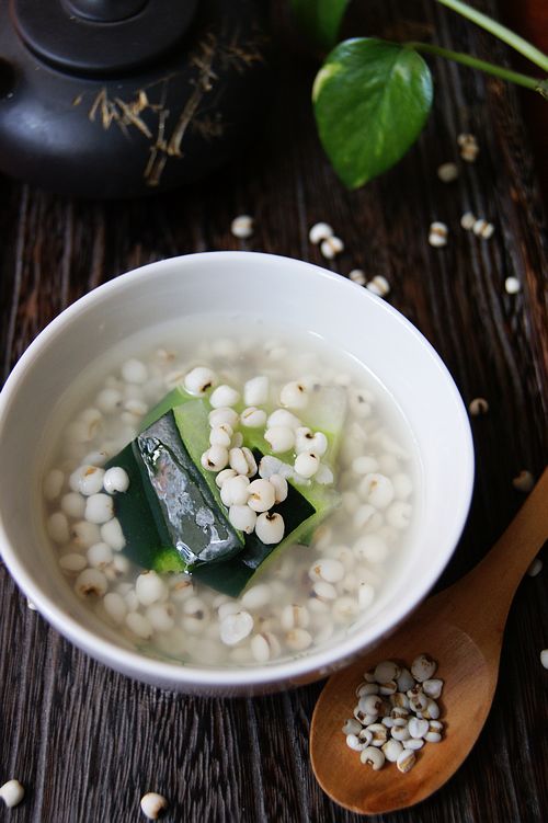 薏米可以当做粮食吃,煮粥、做汤。和冬瓜煮汤,既可佐餐食用,又能清暑利湿,一举两得。 薏仁又名薏苡仁、苡米、苡仁,是常用的中药.又是普遍、常吃的食物。早在神农尝百草时就发现了她,见她婀娜多娇的英姿,白圆如明珠的果实,微风吹拂中是那样姗姗可爱,神农氏就把她当成人了,因而动情地昵称她为"薏苡人"。性味甘淡微寒,有利水消肿、健脾去湿、舒筋除痹、清热排脓等功效,为常用的利水渗湿药。薏米可以去湿,下火,去痘。煲完汤后,汤渣也可以吃。