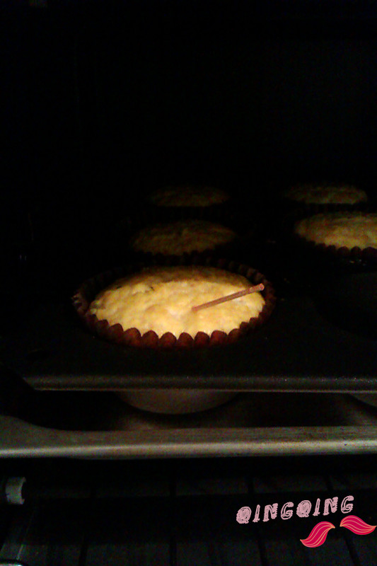 3、烤箱上下火180度20~25分钟用牙签扎至无粘丝即可,或微波炉高火4~5分钟也可.(口感略有不同)
